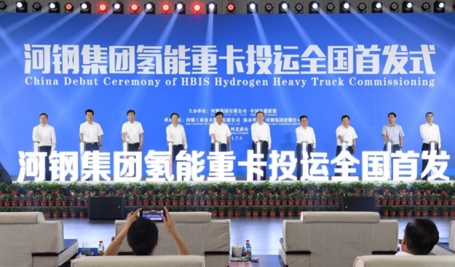 2021年7月5日,河鋼集團舉行氫能重卡投運全國首發式。(河鋼集團供圖)