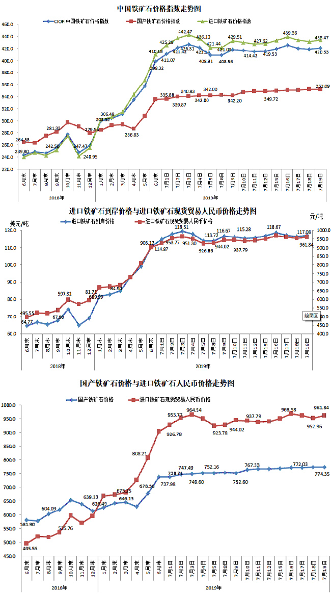 7月19日,中國鐵礦石價格指數(CIOPI)420.53點,環比上升2.18點,升幅為0.52%。其中:國產鐵礦石價格指數為352.09點,環比上升0.01點,升幅為0.00%;進口鐵礦石價格指數為433.47點,環比上升2.59點,升幅為0.60%。