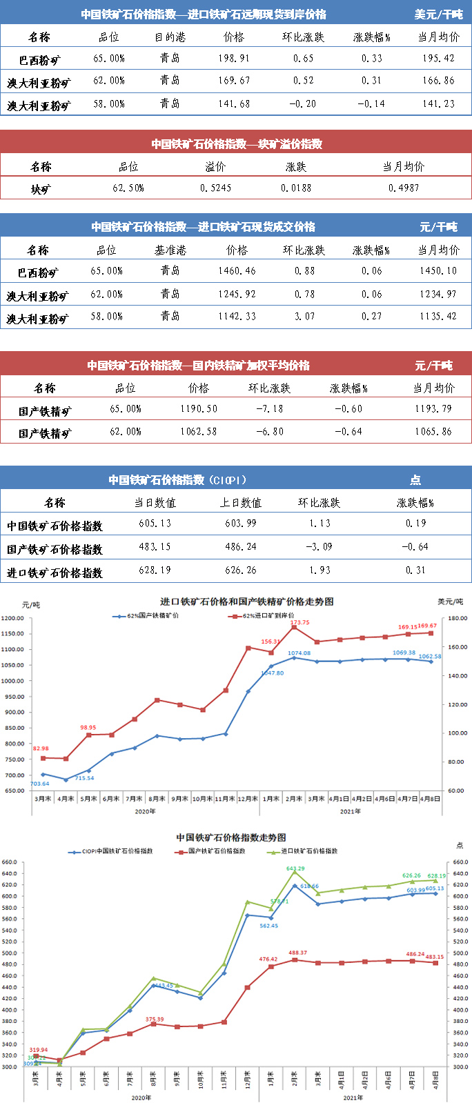 【行業指數】4月8日中國鐵礦石價格指數