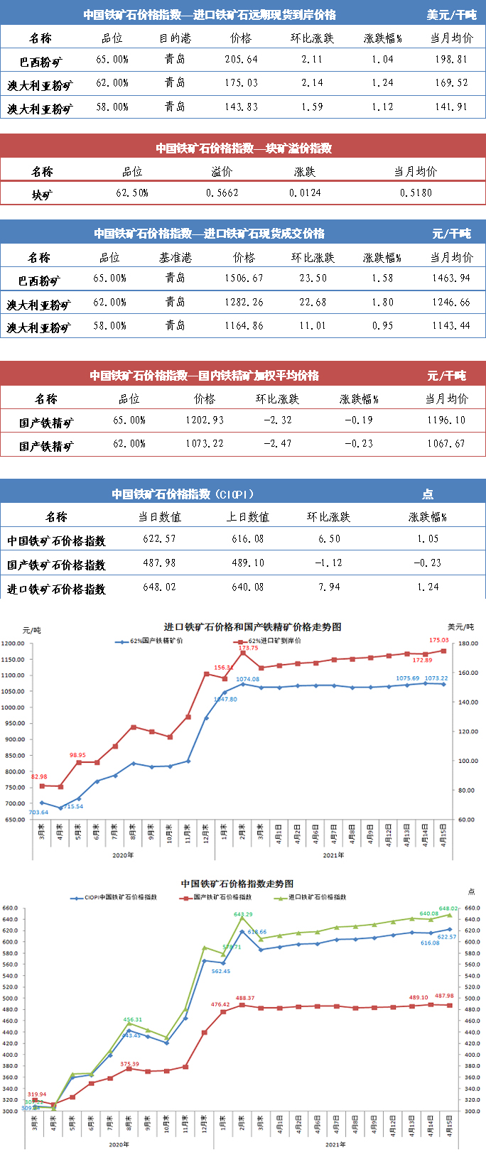 【行業指數】4月15日中國鐵礦石價格指數