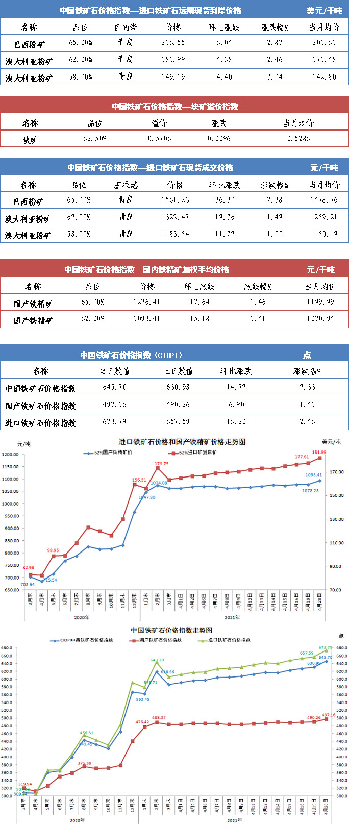 【行業指數】4月20日中國鐵礦石價格指數