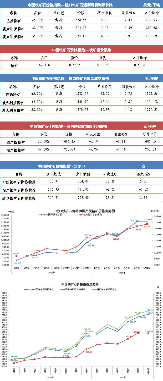 【行業指數】6月1日中國鐵礦石價格指數