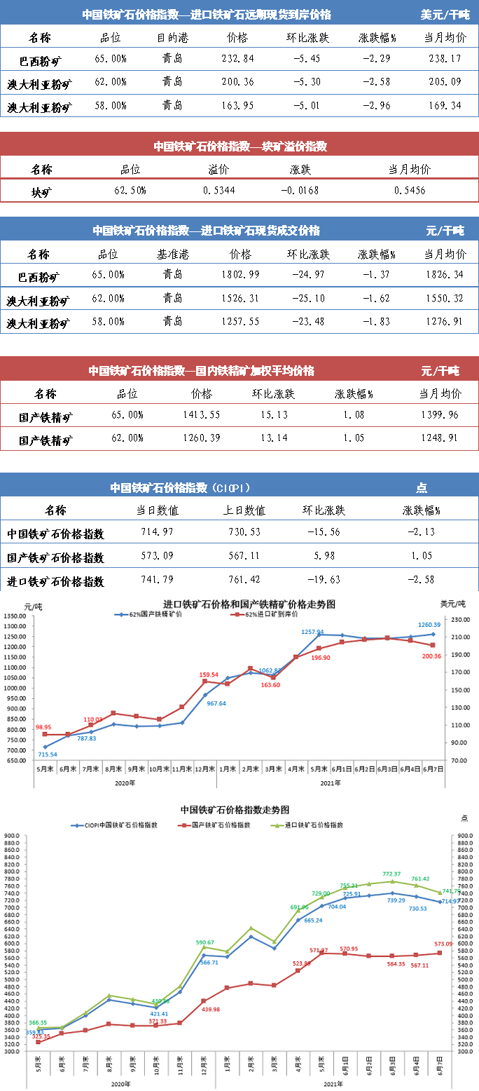 【行業指數】6月7日中國鐵礦石價格指數
