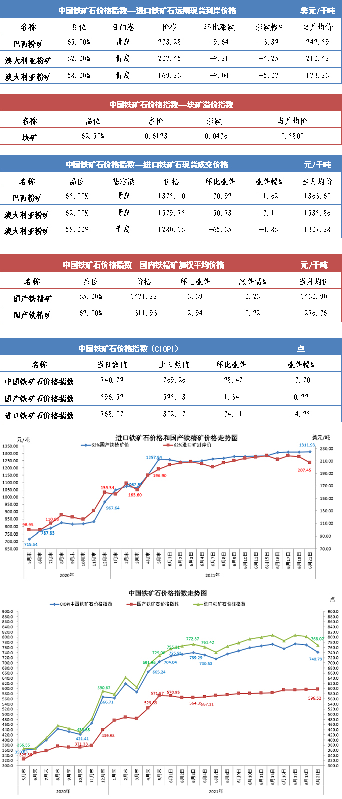 【行業指數】6月21日中國鐵礦石價格指數