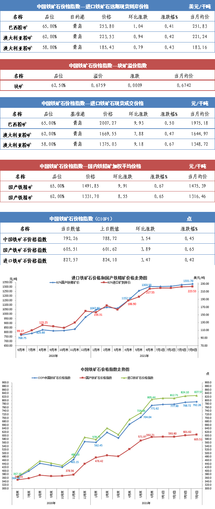 【行業指數】7月6日中國鐵礦石價格指數