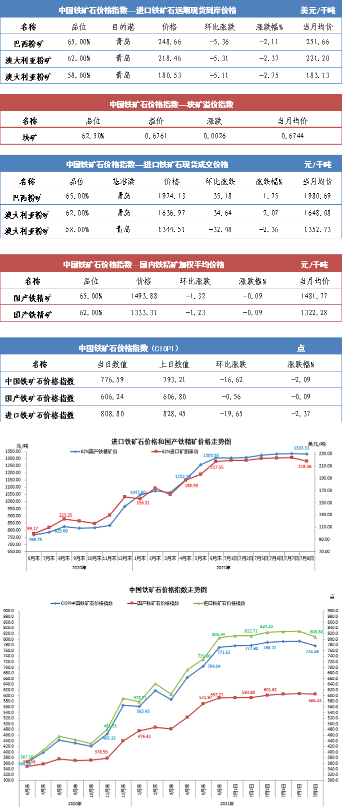 【行業指數】7月8日中國鐵礦石價格指數