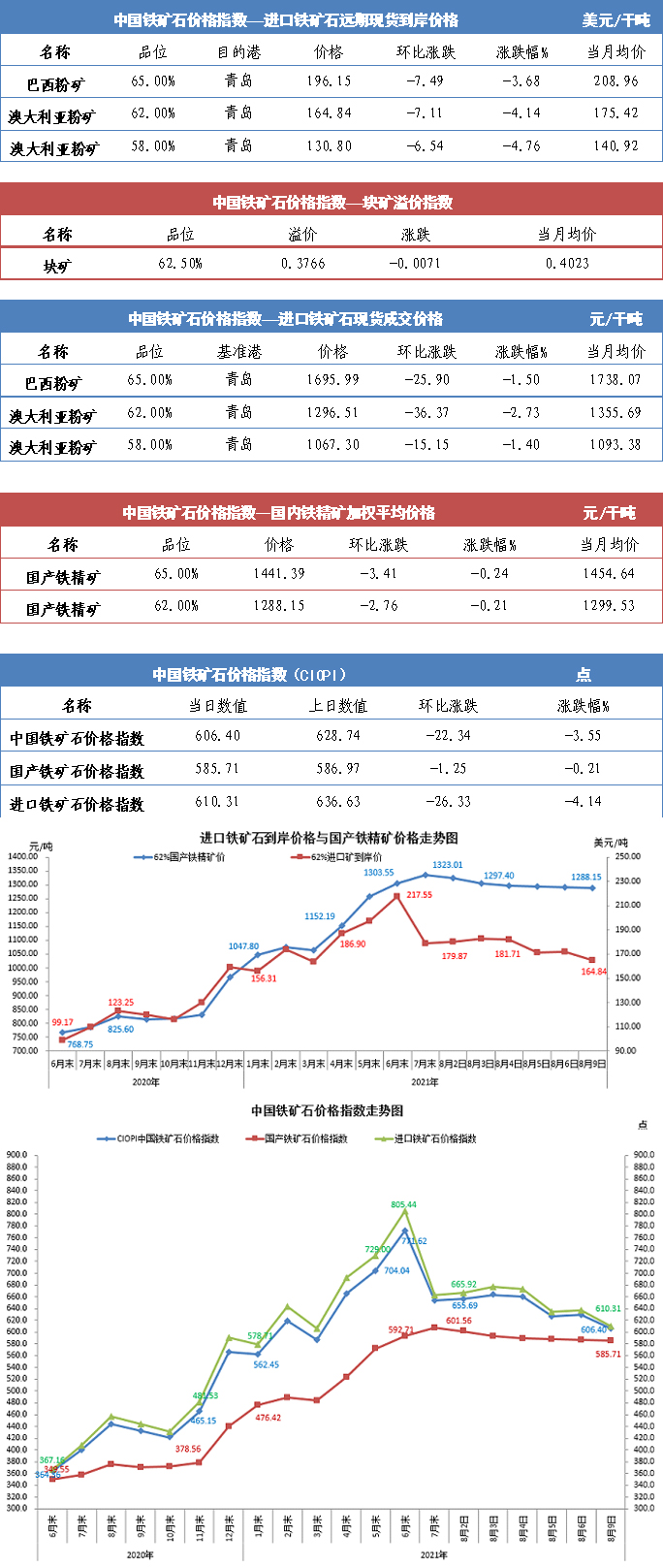 【行業指數】8月9日中國鐵礦石價格指數