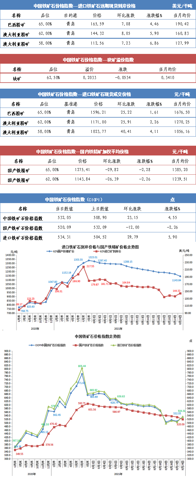 【行業指數】8月24日中國鐵礦石價格指數