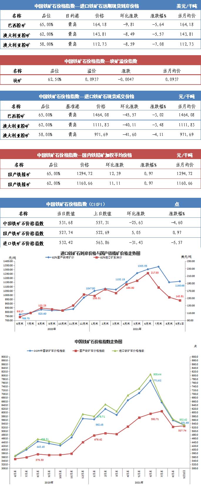 【行業指數】9月1日中國鐵礦石價格指數
