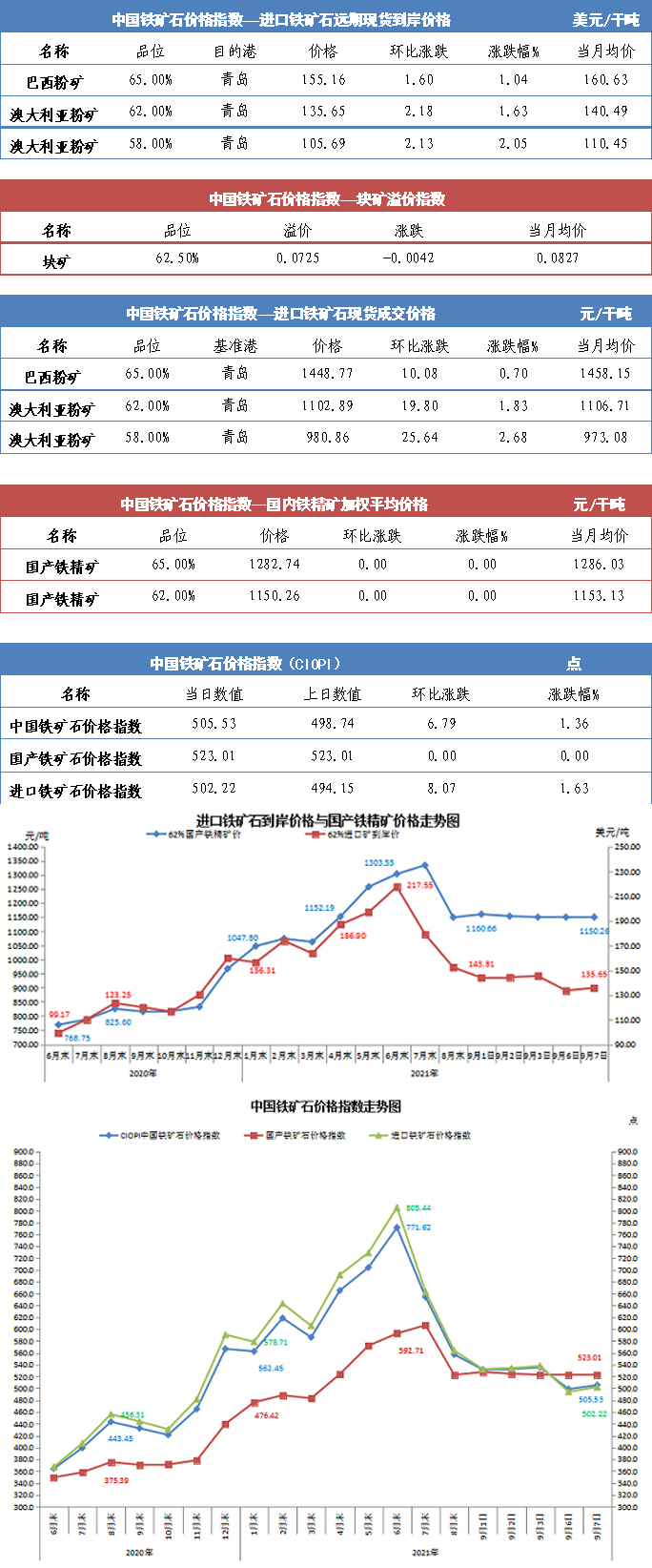 【行業指數】9月7日中國鐵礦石價格指數