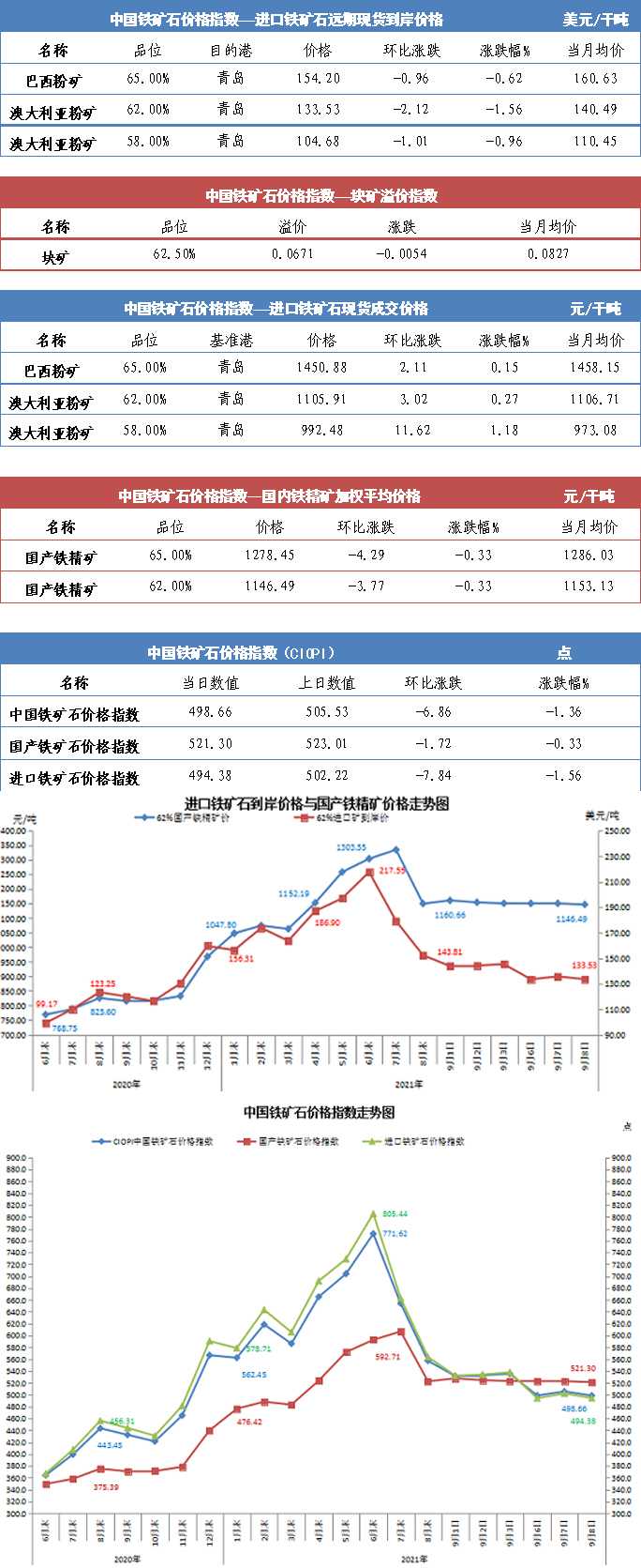 【行業指數】9月8日中國鐵礦石價格指數