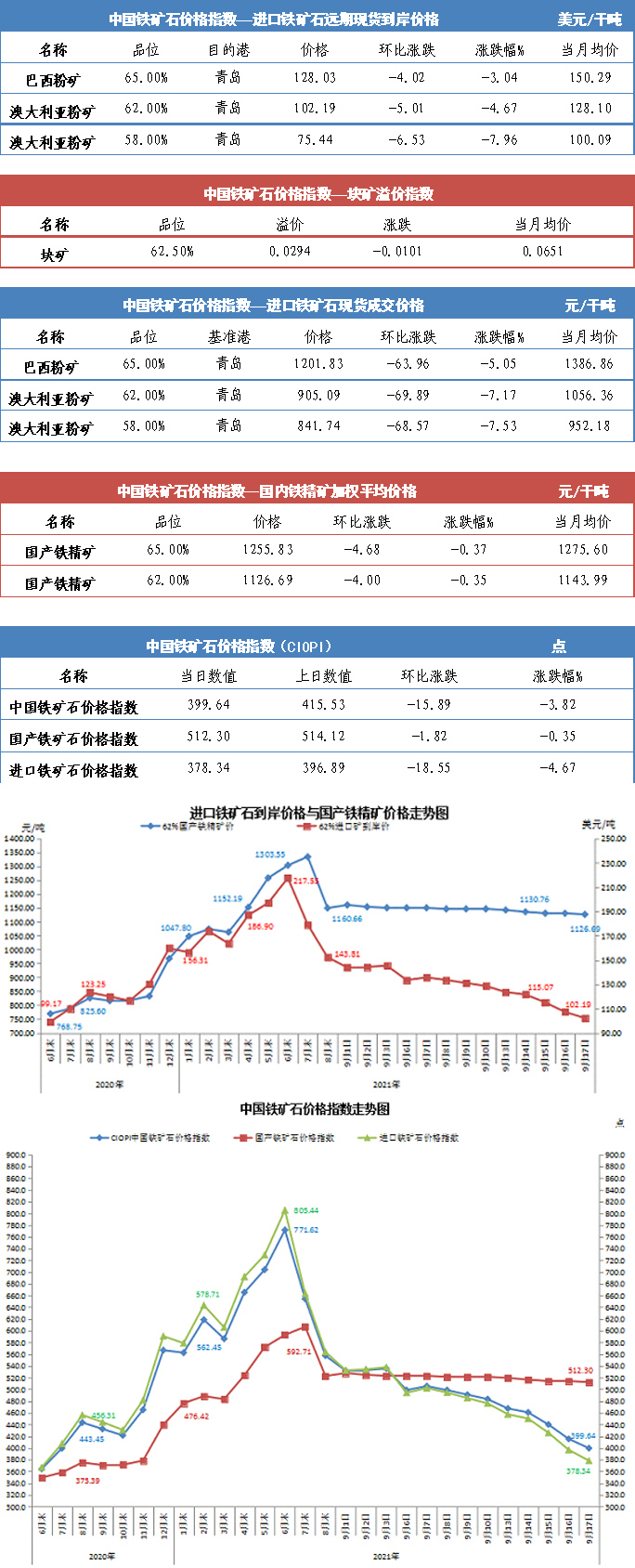 【行業指數】9月17日中國鐵礦石價格指數