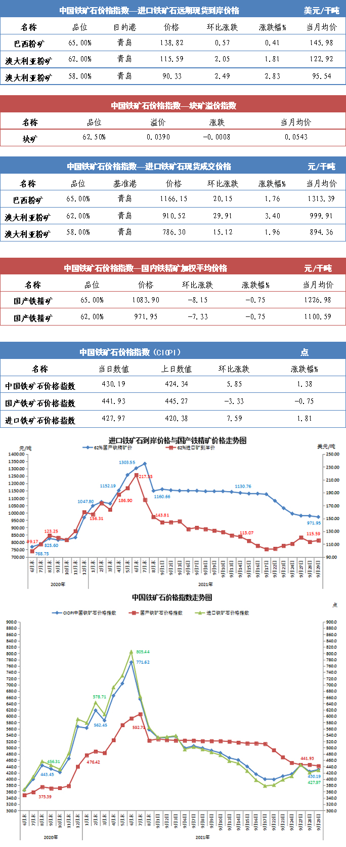【行業指數】9月29日中國鐵礦石價格指數