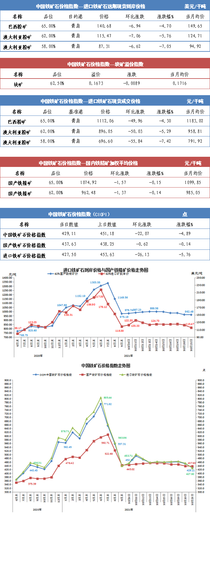 【行業指數】10月21日中國鐵礦石價格指數