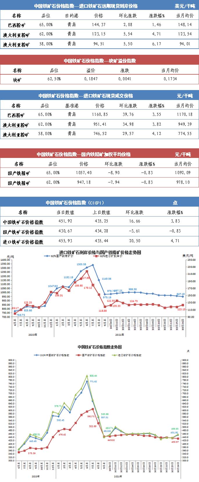 【行業指數】10月26日中國鐵礦石價格指數