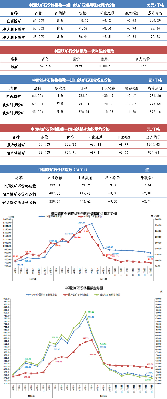 【行業指數】11月9日中國鐵礦石價格指數