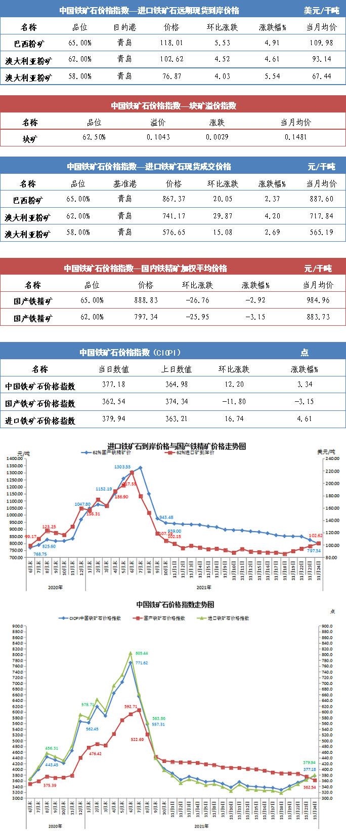 【行業指數】11月24日中國鐵礦石價格指數