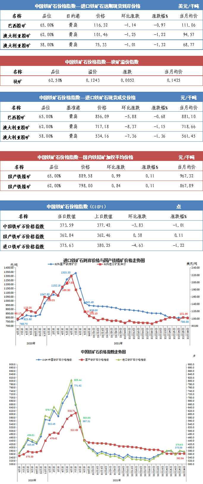 【行業指數】11月30日中國鐵礦石價格指數