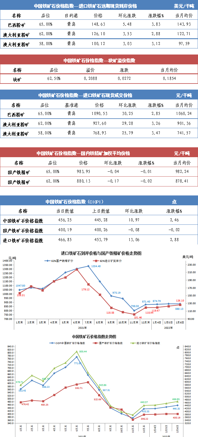 【行業指數】1月6日中國鐵礦石價格指數