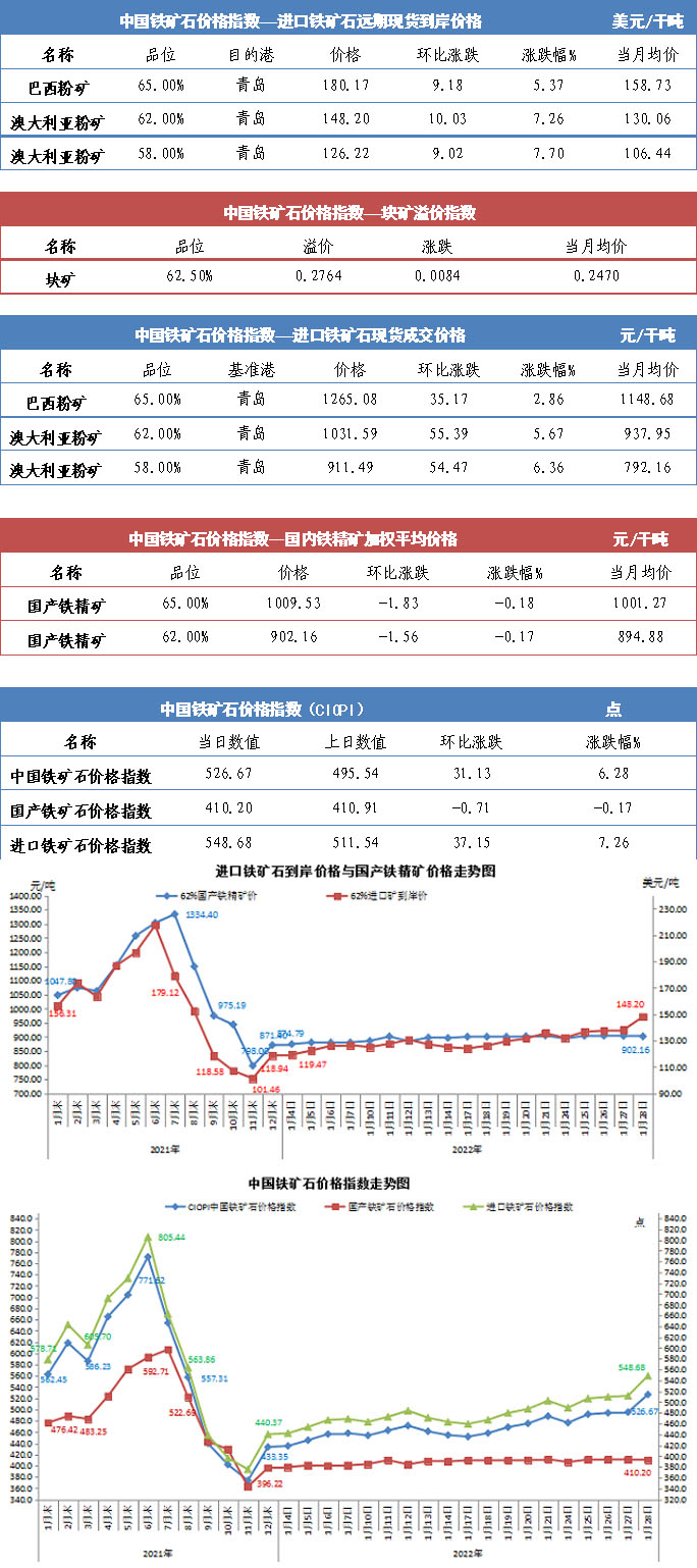 【行業指數】1月28日中國鐵礦石價格指數