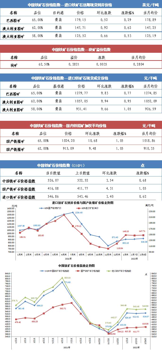 【行業指數】2月8日中國鐵礦石價格指數