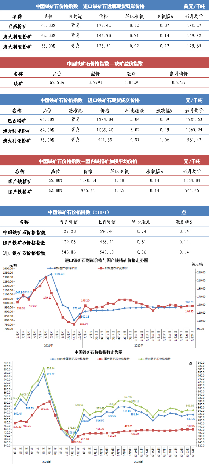 【行業指數】3月24日中國鐵礦石價格指數