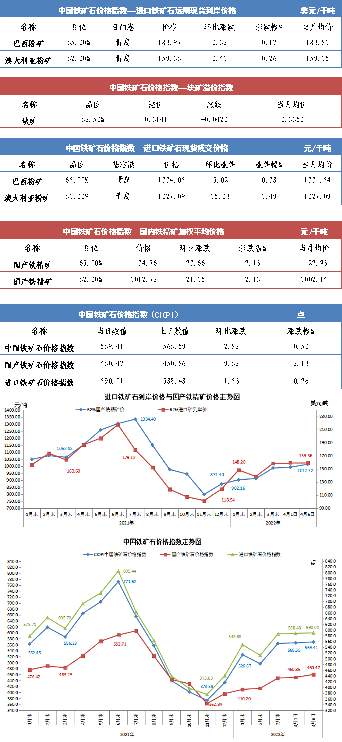 【行業指數】4月6日中國鐵礦石價格指數