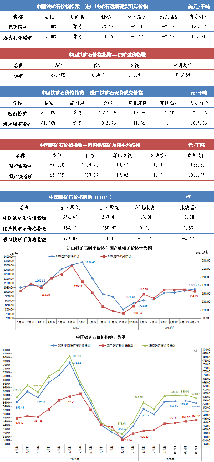 【行業指數】4月7日中國鐵礦石價格指數