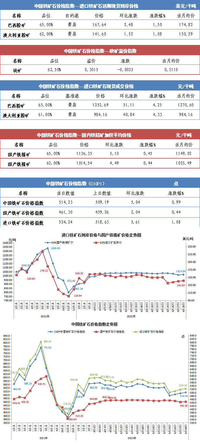 【行業指數】4月29日中國鐵礦石價格指數