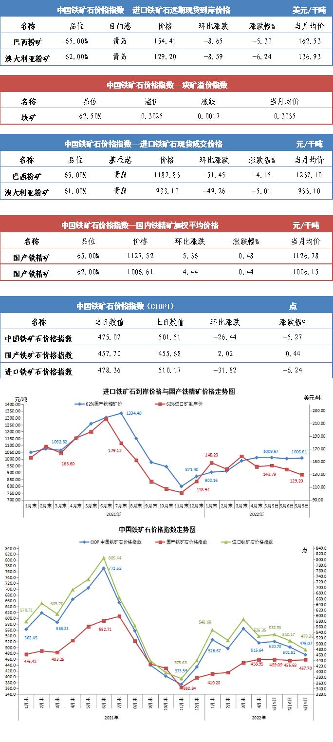 【行業指數】5月9日中國鐵礦石價格指數