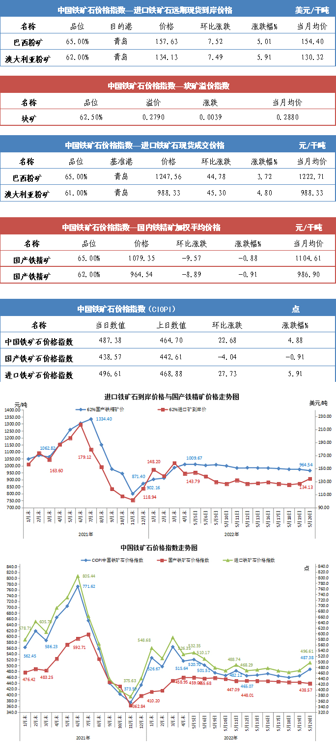 【行業指數】5月20日中國鐵礦石價格指數