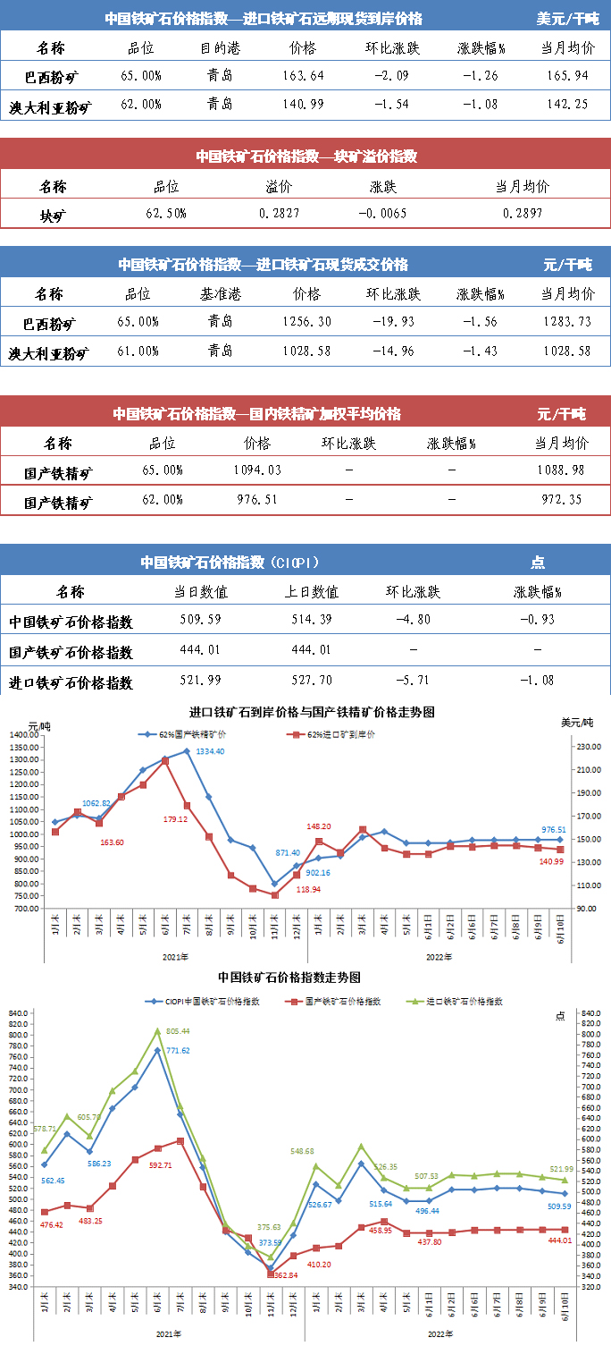 【行業指數】6月10日中國鐵礦石價格指數