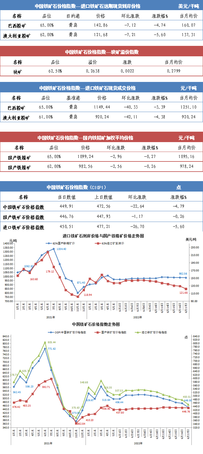 【行業指數】6月17日中國鐵礦石價格指數
