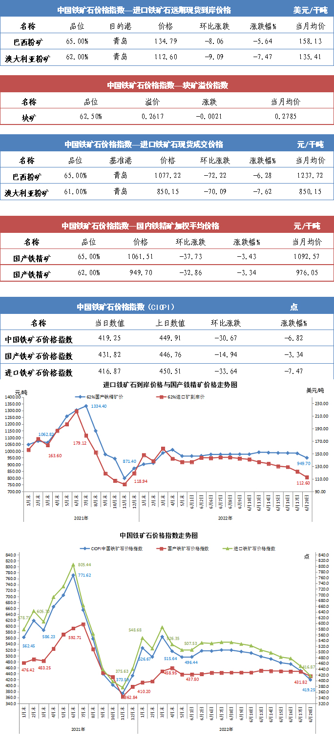 【行業指數】6月20日中國鐵礦石價格指數