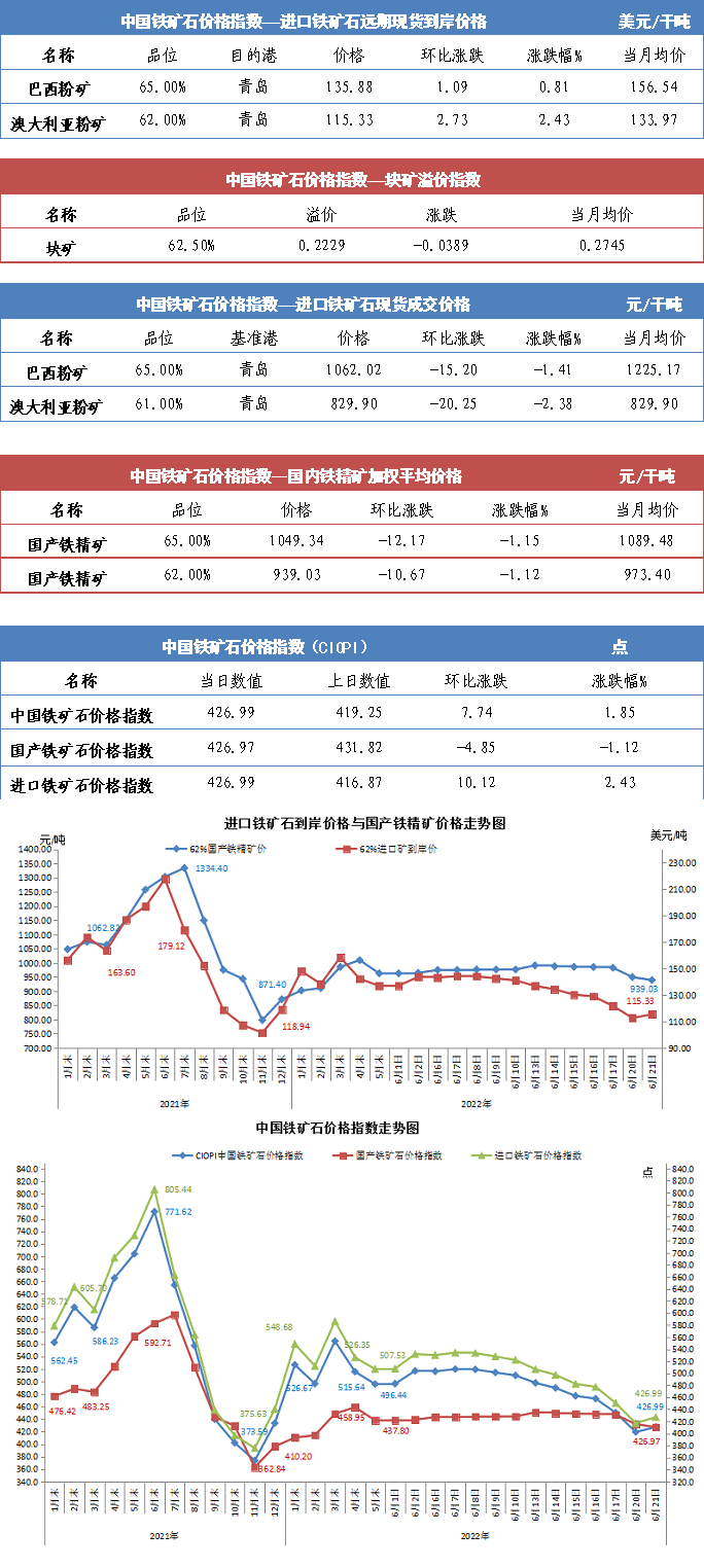 【行業指數】6月21日中國鐵礦石價格指數
