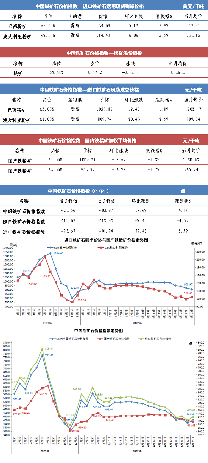 【行業指數】6月23日中國鐵礦石價格指數