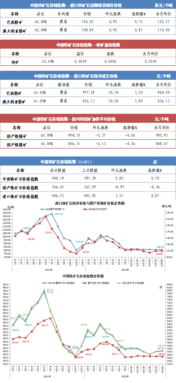 【行業指數】8月8日中國鐵礦石價格指數
