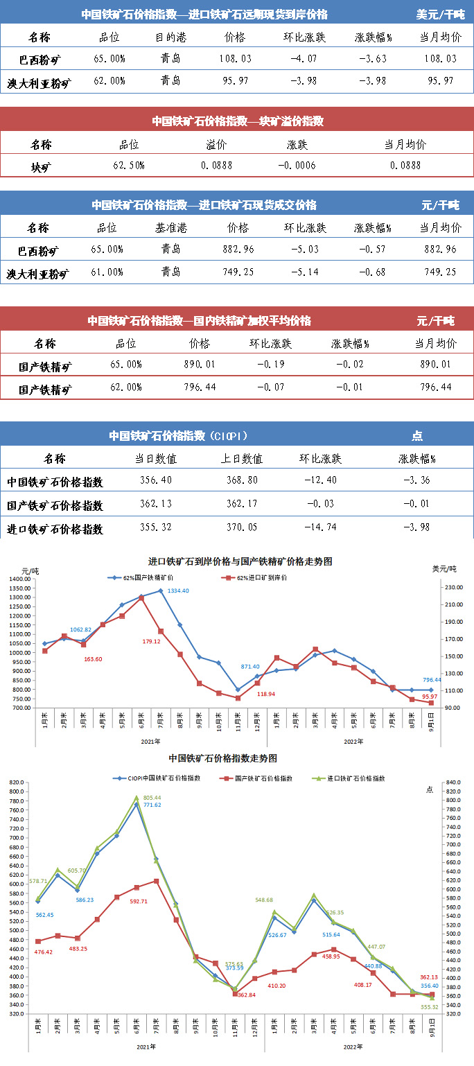 【行業指數】9月1日中國鐵礦石價格指數
