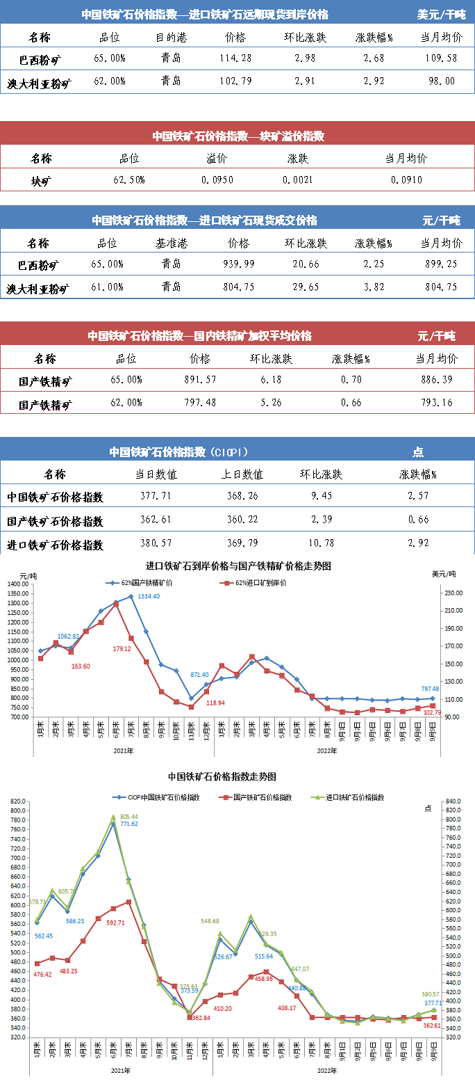 【行業指數】9月9日中國鐵礦石價格指數