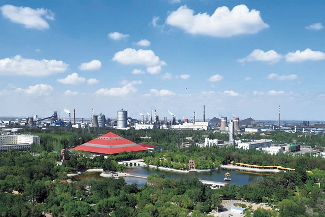 圖為美麗的酒鋼冶金廠區。 (酒鋼 供圖)