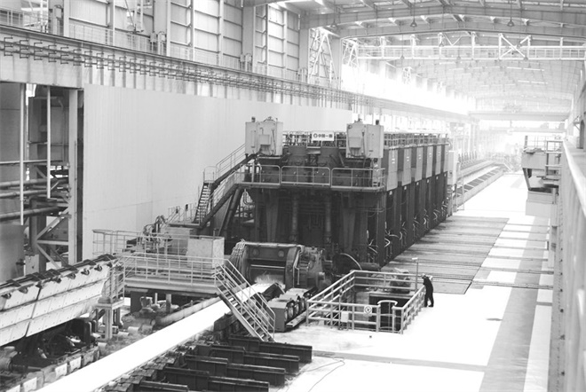 圖為安鋼1780軋機正在軋制高強汽車鋼。(特約通訊員殷海民 攝)