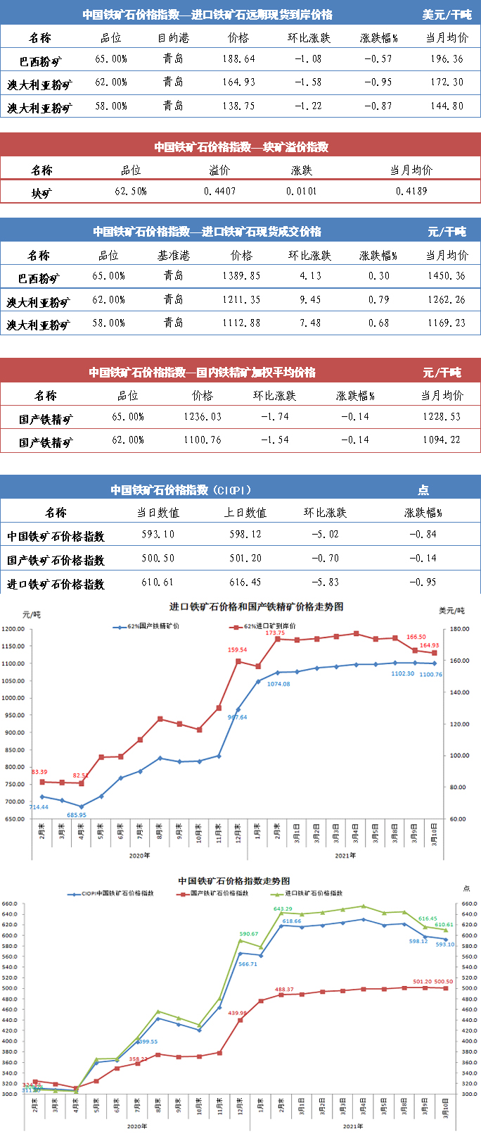 【行業指數】3月10日中國鐵礦石價格指數