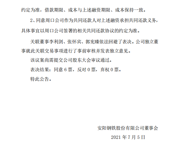 安陽鋼鐵股份有限公司2021年第四次臨時董事會會議決議公告