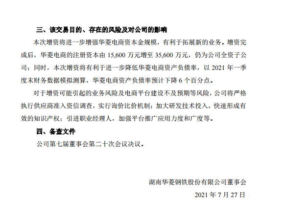 華菱鋼鐵:關于對全資子公司華菱電商增資的公告