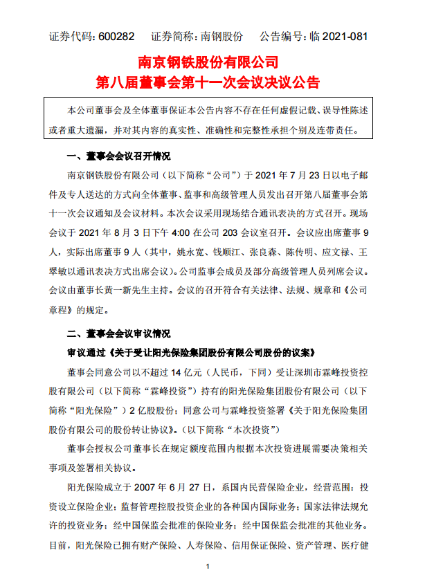 南京鋼鐵股份有限公司第八屆董事會第十一次會議決議公