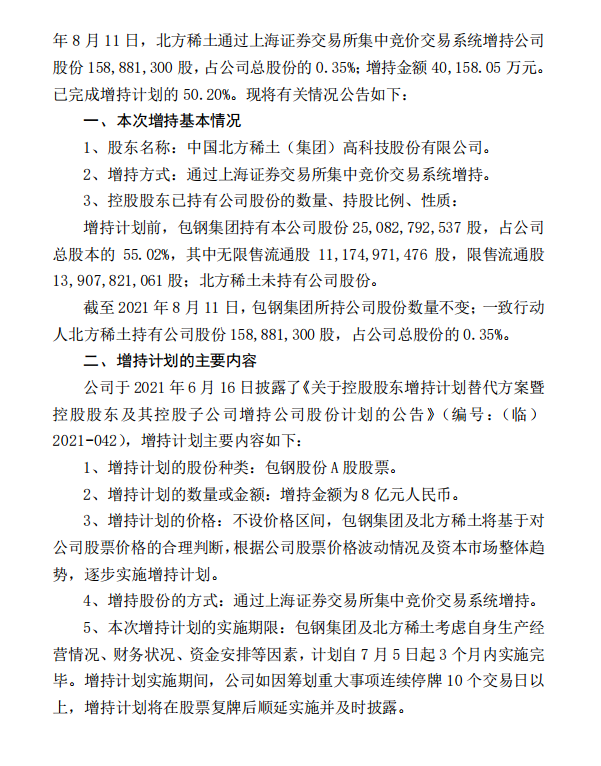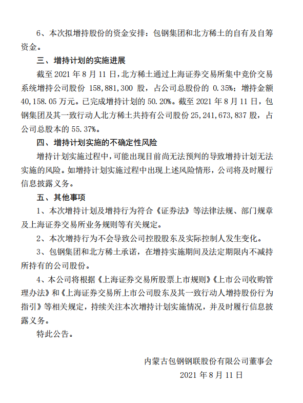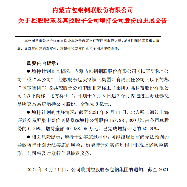包鋼股份關于控股股東及其控股子公司增持公司股份的進展公告