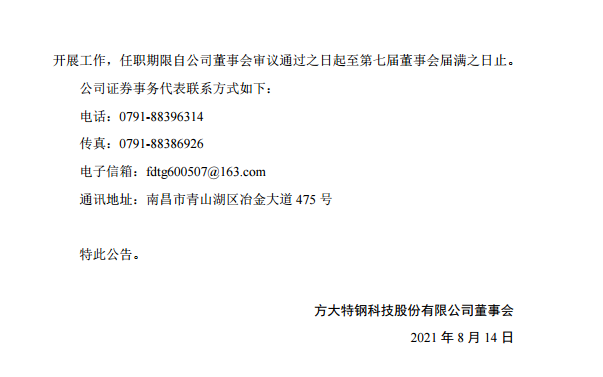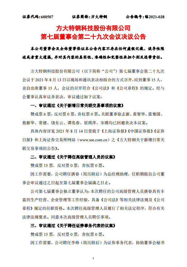 方大特鋼第七屆董事會第二十九次會議決議公告