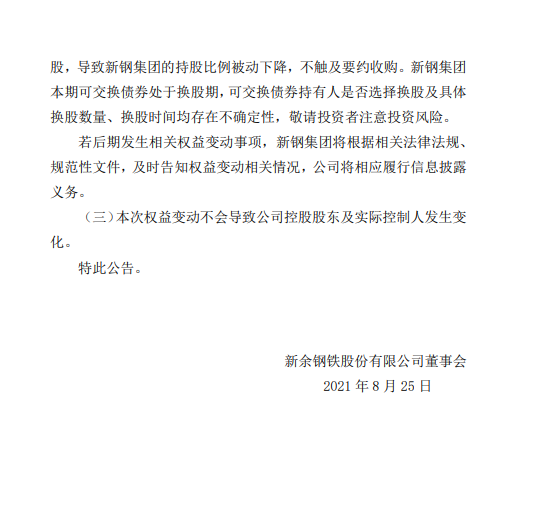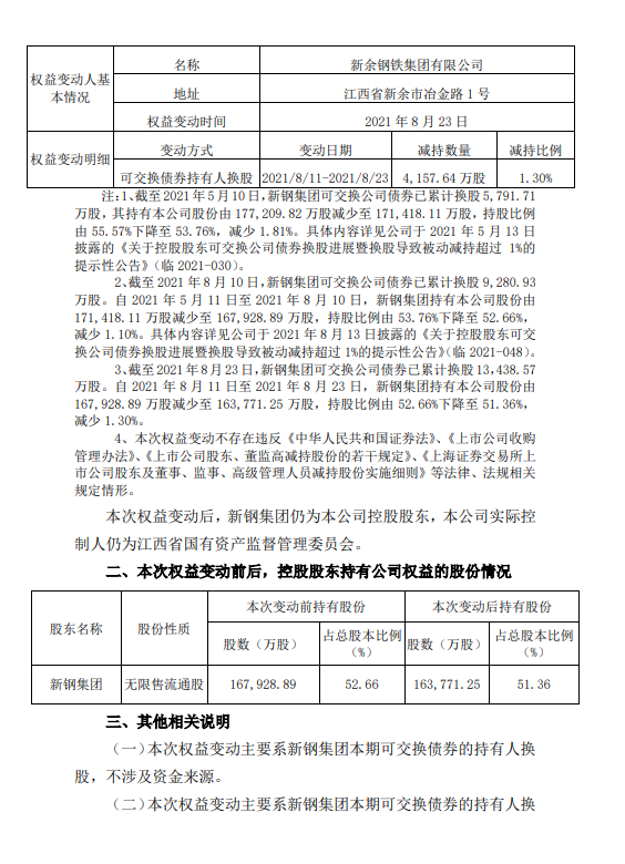 新鋼股份關于控股股東可交債換股導致其持股比例變動超過1%的公告