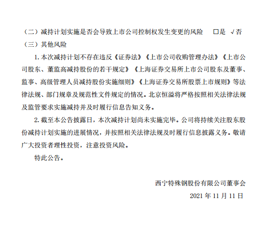 西寧特殊鋼股份有限公司關于持股5%以上股東集中競價減持股份時間過半暨減持進展公告