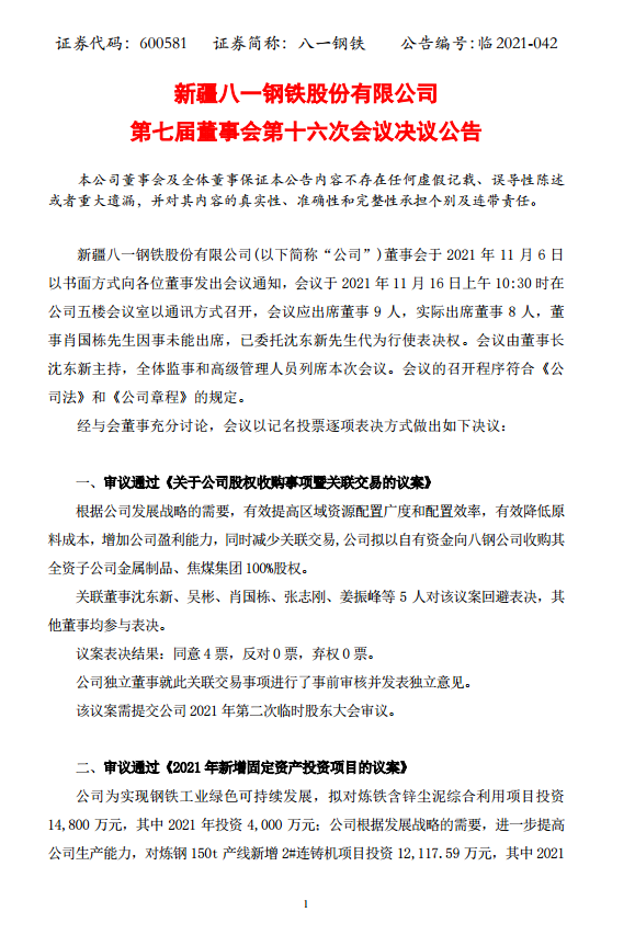 新疆八一鋼鐵股份有限公司第七屆董事會第十六次會議決議公告